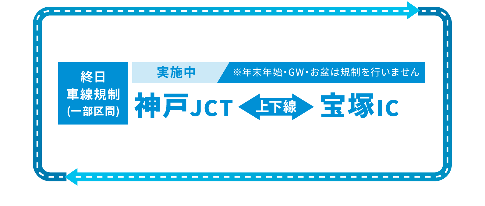 終日車線規制宝塚IC〜神戸JCT(一部区間)